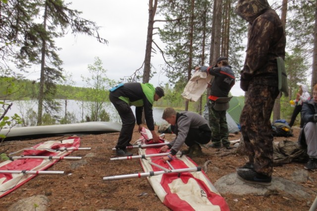 16 туристов клуба "Скиталец" (Пушкин Данил, Сидоренко Мария, Соболев Илья, Андрощук Матвей, Селянин Павел,Трухина Анна, Аношин Дмитрий, Мельниченко Данил, Тропин Данил, Горних Данил, Орехов Егор и инструктора Борисов Юрий, Агафонов Матвей, Жидкова Валерия, Сакулин Иван) на байдарках, катамаранах и каяках две недели провели в водном походе в Северной Карелии.