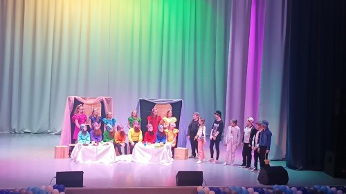 На сцене ДЮЦа ребята представили пьесу в стихах Натальи Пекарж "Радужные гномы". С ноября ребята готовились. Распределили роли, репетировали, готовили костюмы и декорации.